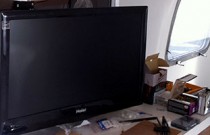 A new entertainment center includes a retractable monitor and DVD player. The Energy Star dual fuel refrigerator has also been installed. The front finish panel will be one of the last items added. All of the walls have been sanded, primed, smoothed and painted with low VOC paint.