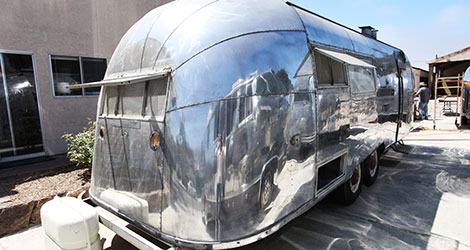…at least twice a year. Your Airstream is a $50,000+ investment, so chances are you’d wax a nice car a couple times a year. After your vintage Airstream has been professionally polished, you should maintain that mirror shine by polishing it with fine grit polish compound at least once a year. Start out buying yourself a Makita or Milwaukee rotary polisher and a can of S-type fine grit polish. If the Airstream was polished correctly within the past year the re-polishing job shouldn’t take more than an hour a linear foot. Check out this 4-page primer on “How to Polish Vintage Airstreams” by Steve Hingtgen, owner of Vintage Trailer Supply. Then go find a strong, healthy young person and create a job!