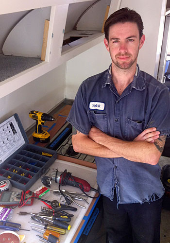 Seth: My role is to produce the systems, such as electrical – I work with 12v, 110v, and 240v – as well as installing inverters, converters and solar. I handle the rough-in and installation of appliances for bathrooms, kitchens, lighting, solar, audio and video. I also work with systems for fresh and wastewater, gas and hydraulics.