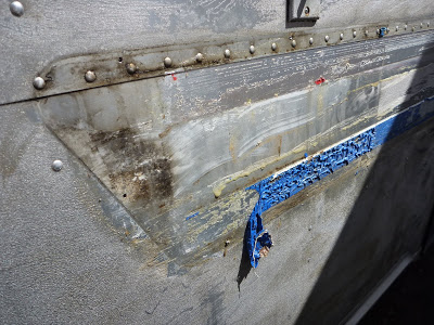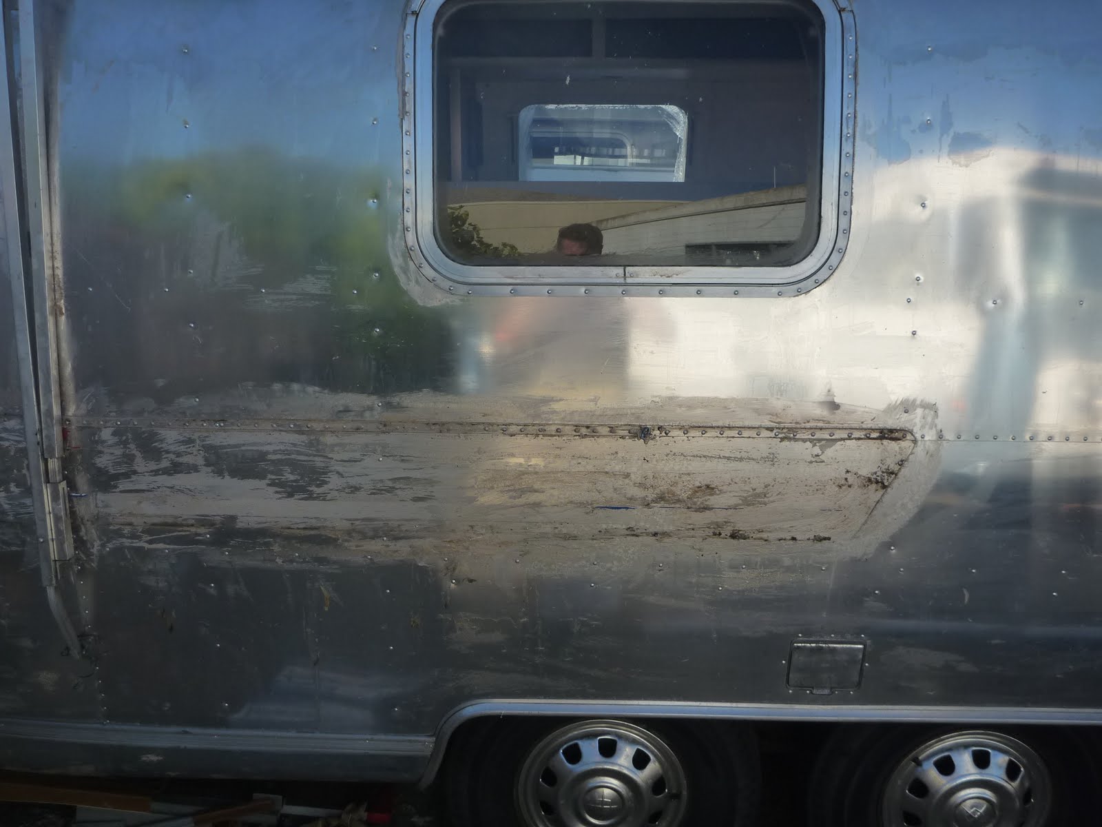 With the ultimate goal of polishing the outside to a mirror like shine, I found that a very thin and stubborn animal lay in my way. Before I can even touch the aluminum skin of the trailer, I have to remove what amounts to a factory option clear coat finish (to protect the aluminum over the years.) It just makes it look dull.