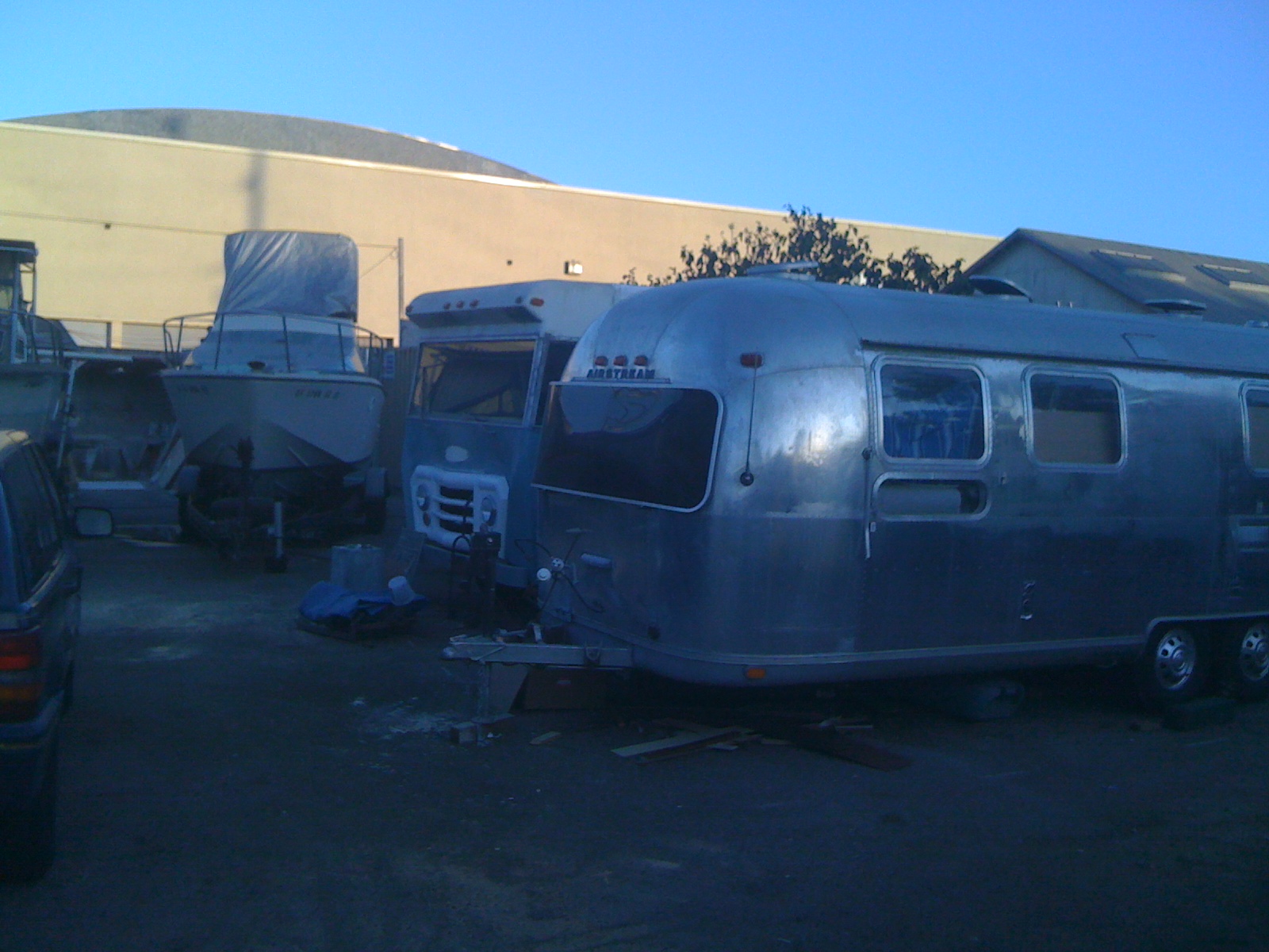 Downtown Santa Barbara, a commercial work yard in the FUnk ZonE. My neighbors are: One old trailer where a gentleman lives and makes custom sketchbooks out of dried hickory; three 25-30 foot boats; several bands that practice and record in shipping containers; a local artist sculptor (he just submitted an artpiece on the hollywood walk of fame (big guitar sculpture.)