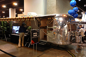 The humor wasn’t lost on the surprising display of a shiny vintage trailer. “It was fun to see attendees walk up to us and ask,