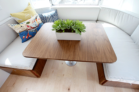 Quick-and-easy access to centrally-located bathroom and kitchen for a family of four, or two couples, is clearly a plus for a floor plan that just works. As a guesthouse for friends, or a off-the grid great outdoors experience with onboard water storage, propane, and 12 volt battery power makes even more sense.